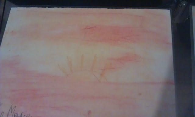 No plan where to start. Had a look at a few videos of chalk pastels.Annu started with a sunset. Doing really well. Using various shades and blended very well by patting with her fingers.These drawings with soft pastels can be easily smudged and blended, but results in high proportion of dust.